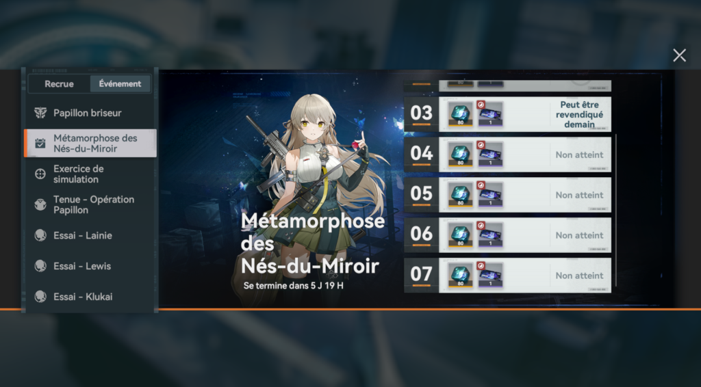 Elle ajoute Lainie en bannière limitée, accompagnée de son arme signature Périhélie, ainsi que le retour de Lewis et Klukai via des reruns. L’événement Papillon Briseur poursuit la narration principale et permet d’obtenir de nombreuses pièces d’effondrement, utiles pour améliorer les unités.