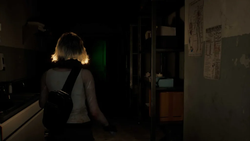 La partie Grace Ashcroft propose une vue à la première personne, dans la lignée de Resident Evil 7. L’expérience est conçue pour maximiser l’angoisse : les couloirs sombres, les sons inquiétants et les surprises constantes plongent le joueur dans une atmosphère oppressante.